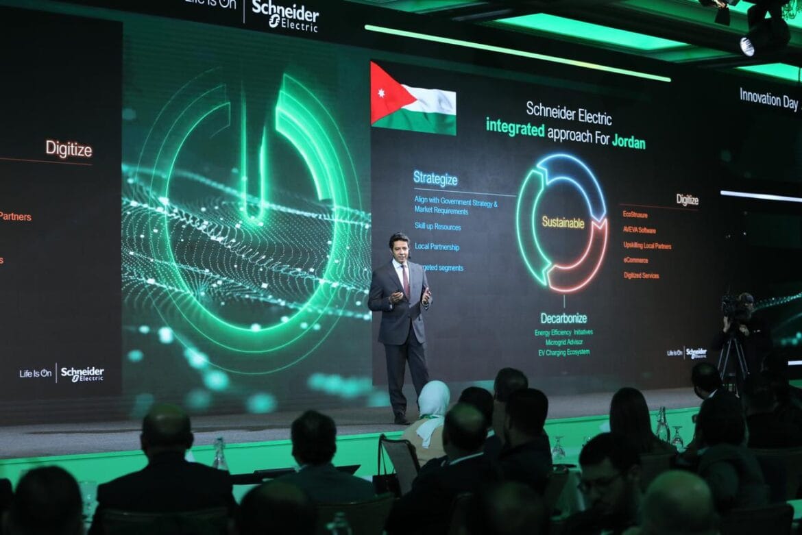 في إطار تعزيز التحول الرقمي وكفاءة الطاقة في الأردن، نظمت شركة شنايدر إلكتريك، الرائدة عالميًا في مجال التحول الرقمي لإدارة الطاقة والتحكم الآلي، النسخة الثانية من فعالية “يوم الابتكار” في عمان، تحت شعار “الطريق نحو الكفاءة الرقمية”. الحدث شهد حضور معالي المهندس سامي سميرات، وزير الاقتصاد الرقمي والريادة، وسعادة السفير الفرنسي في الأردن أليكسي لوكوور غرانميزون، وعدد من قيادات شنايدر إلكتريك في منطقة شمال شرق أفريقيا والمشرق العربي، أبرزهم سيباستيان رييز الرئيس التنفيذي لشركة شنايدر إلكتريك في المنطقة، إضافة إلى كبار العملاء والشركاء والموزعين.